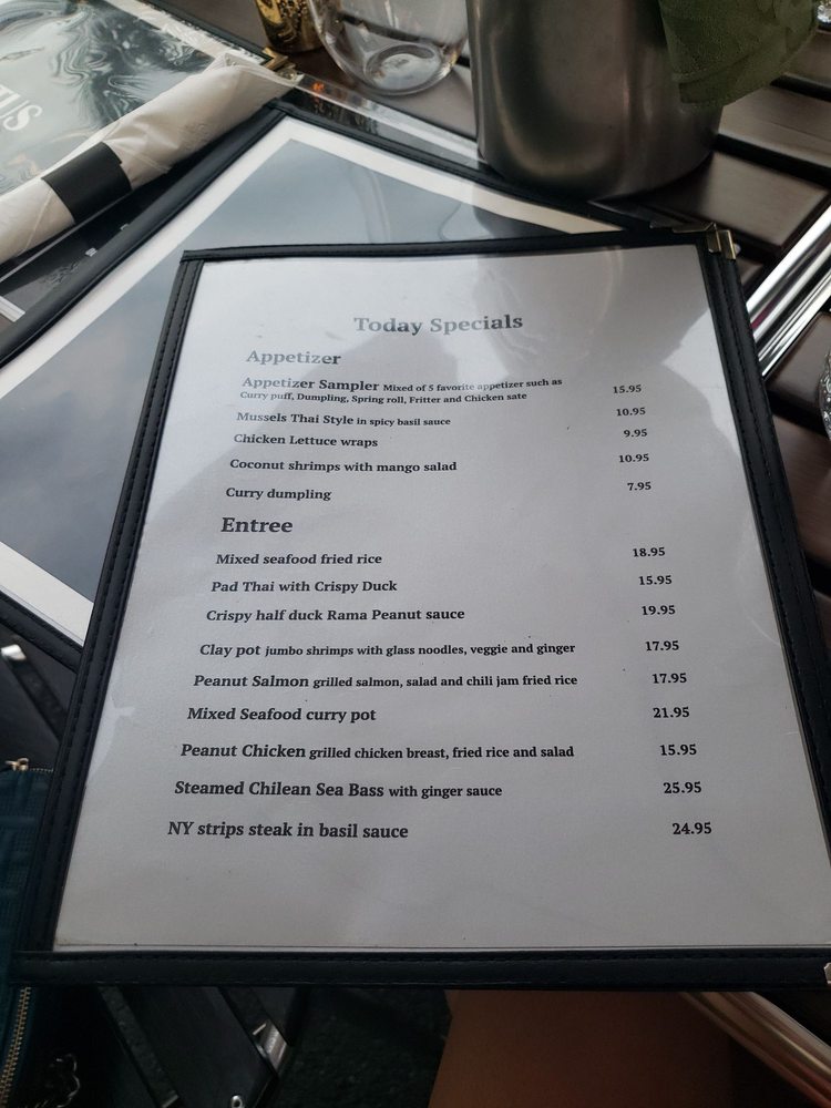 Lotus Thai Cuisine in Guttenberg, NJ, offers a diverse menu with a cozy and intimate ambiance. With options for vegan and vegetarian diners, the restaurant provides a plethora of flavorful dishes. Standout items include the crispy chive cakes, green papaya salad, three flavors jumbo shrimp, and the incredibly crispy duck shu shee. Customers rave about the food quality and attentive service, making it a favorite spot for weekend indulgence or special occasions. The BYOB policy adds to the charm, and the outdoor seating option enhances the dining experience. Overall, Lotus Thai Cuisine impresses with its delicious offerings, making it a must-visit for Thai cuisine enthusiasts.